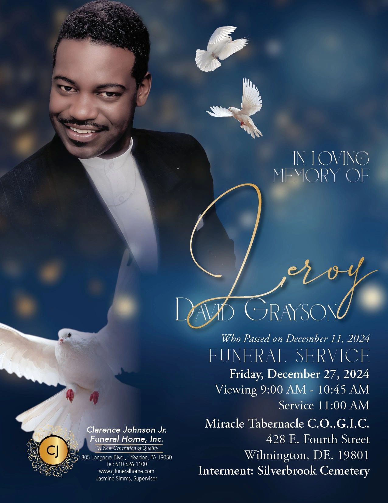 Leroy Grayson was affectionately known as Mr. G He was Compassionate: Courageous: Loyal: And Full of Wisdom He was Ambitious: Gifted A Jokester And Extremely Creative. He had a Smile that would Light Up a Room. Mr. G was One of a Kind.